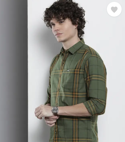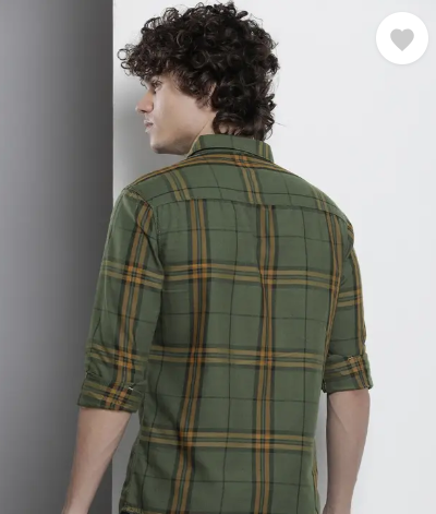 Men Regular Fit Checkered Cut Away Collar Casual Shirt