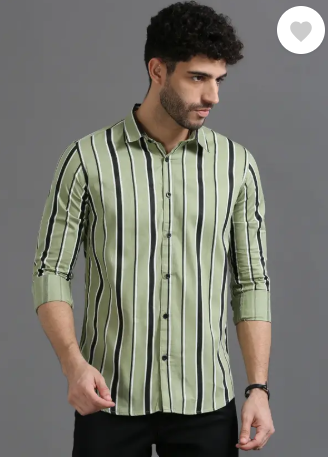 Men Regular Fit Striped Cut Away Collar Casual Shirt