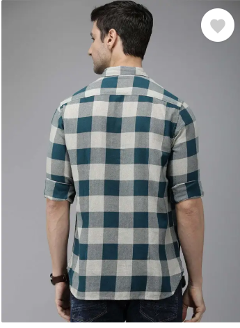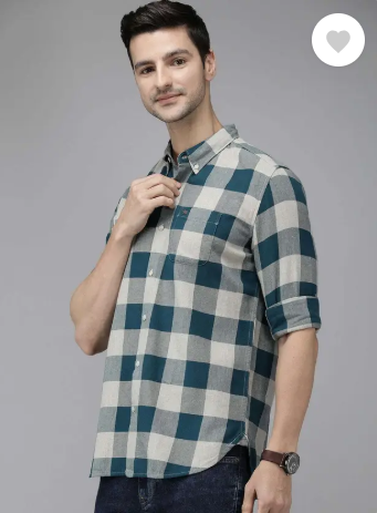 Men Slim Fit Checkered Button Down Collar Casual Shirt