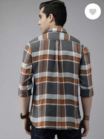 Men Slim Fit Checkered Button Down Collar Casual Shirt