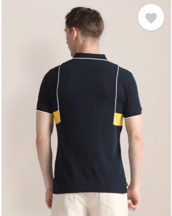 Men Colorblock Polo Neck Pure Cotton Blue T-Shirt