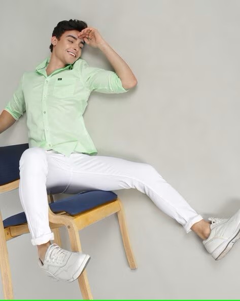 Spread Collar Shirt with Logo Patch Pocket