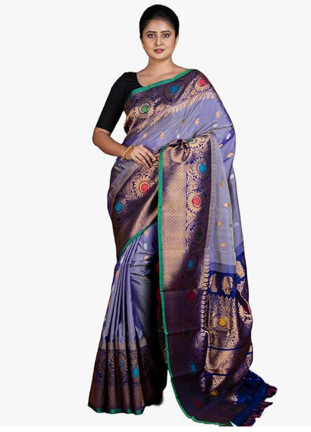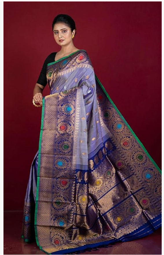 Handwoven Floral Minakari Nakshi Work Border Gadwal Silk Saree