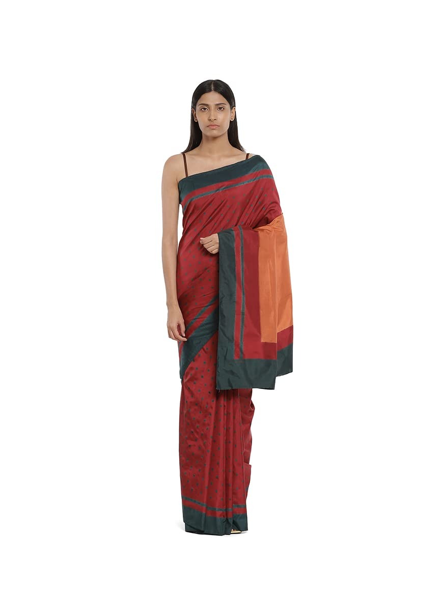 Satya Paul Red Silk Printed Saree