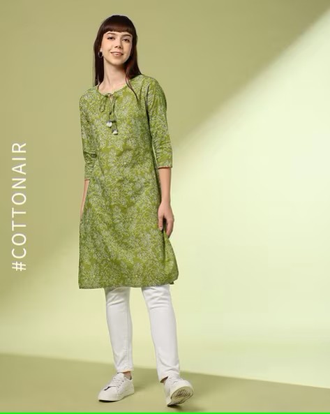 Women Floral Print Cambric Cotton Straight Kurta
