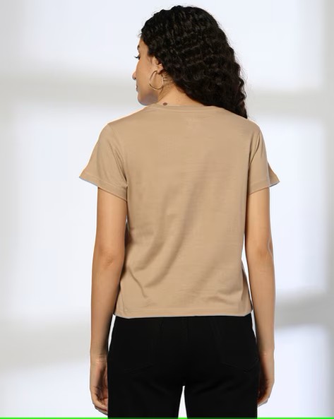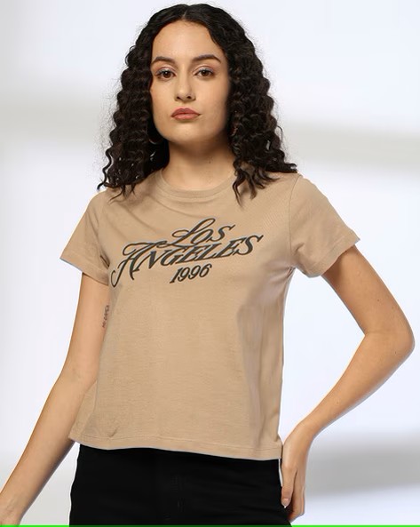 Women Typographic Print Regular Fit Cotton Crew-Neck T-Shirt