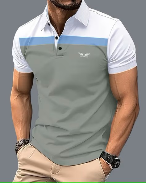 Men Colourblock Regular Fit Polo T-Shirt