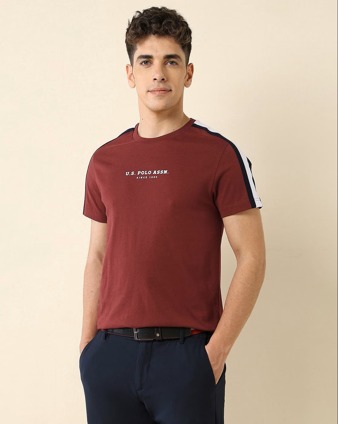 Men Slim Fit Crew-Neck T-Shirt with Brand Print