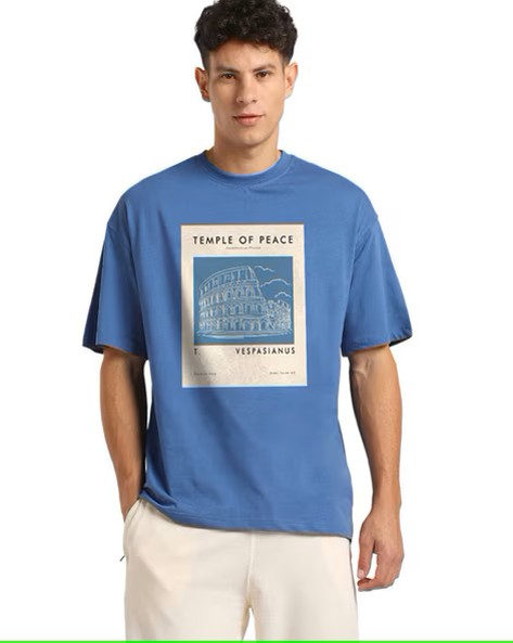 Men Graphic Print Oversized Crew-Neck T-Shirt