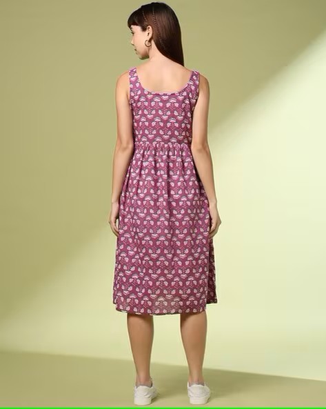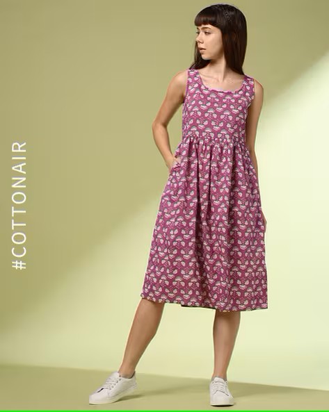 • 100% cotton cambric printed a-line sleeveless dress comes in round neckline