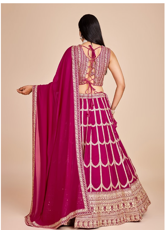 Step into elegance with this stunning Rani Pink Embroidered Georgette Lehenga Set, designed to turn heads at every celebration. A beautiful blend of tradition and trend, it's your perfect pick for any grand event.