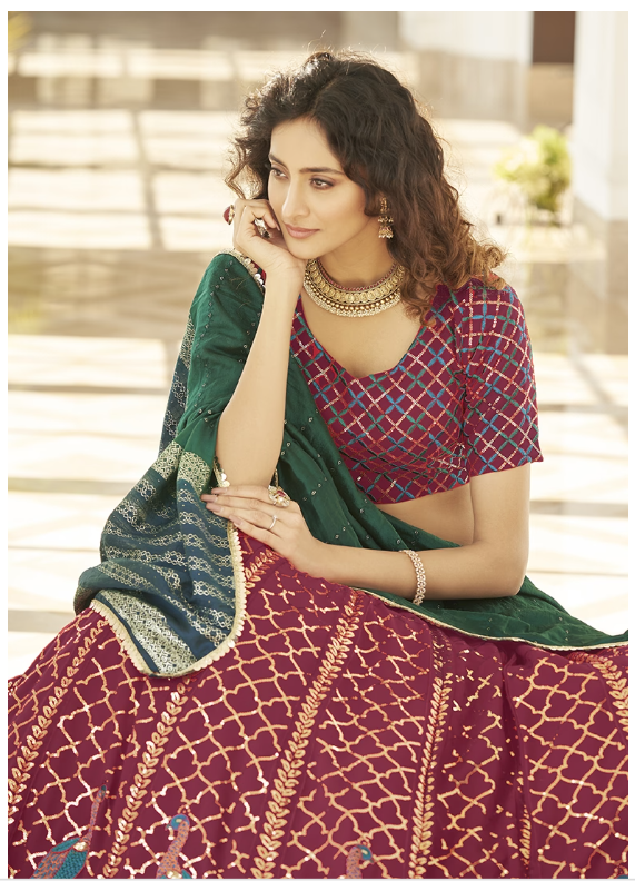 Step into elegance with this stunning Rani Pink Thread Embroidered Georgette Lehenga Set, designed to turn heads at every celebration. A beautiful blend of tradition and trend, it's your perfect pick for any grand event.