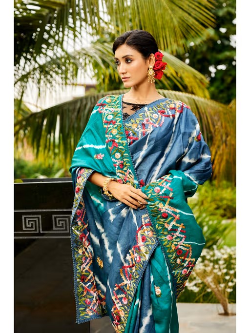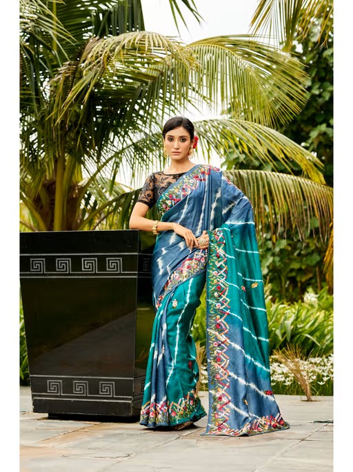 This 2D Shade Pure Tussar Saree Is Beautifully Detailed with Vibrant Laheriya Patterns and Intricate Hand Embroidery. The Rich Texture Of The Tussar Fabric, Combined with The Traditional Design, Offers A Perfect Blend Of Heritage and Elegance. Ideal for Special Occasions, This Saree Exudes Timeless Charm and Craftsmanship.