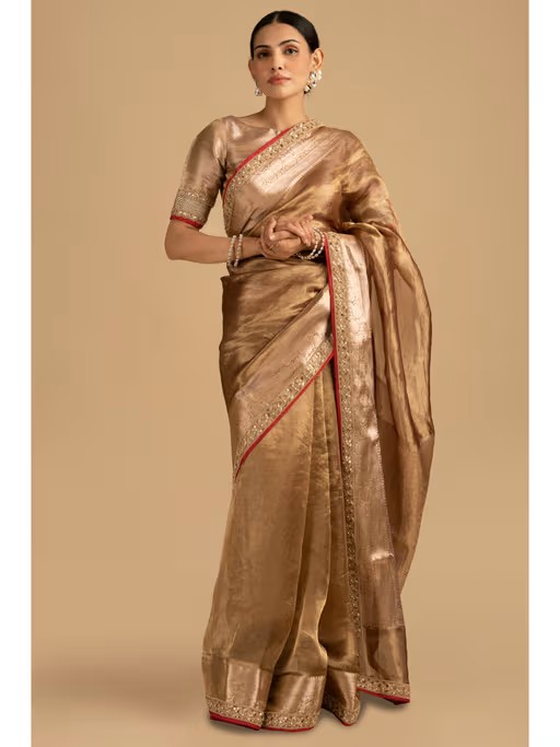 This Exquisite Banarasi Handloom Saree Is A Must-Have To Your Wardrobe. Adorned With Intricate Zari Patterns And Rich Tissue Silk Fabric, This Saree Adds A Touch Of Sophistication To Your Persona. Pair This Saree With A Stylish Blouse To Get A Classy Look.