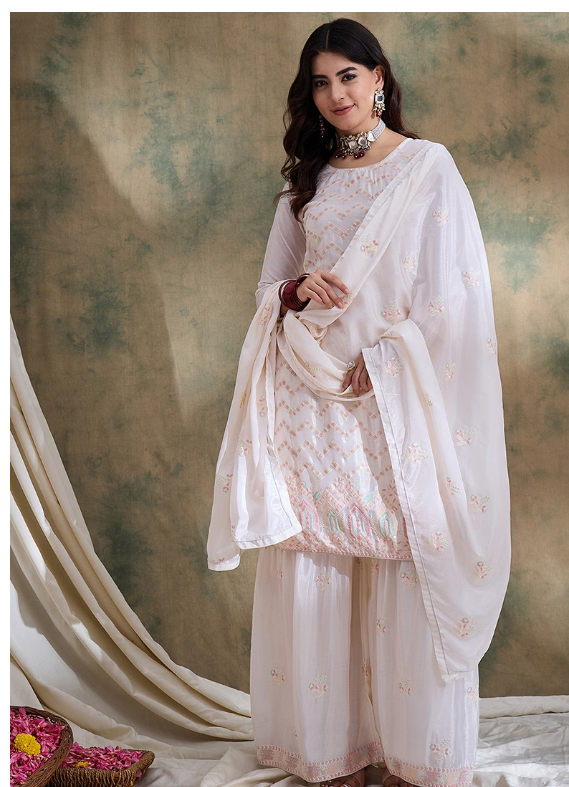 Majority of our items contain embellishments and embroidery and therefore fragile in their usage. From time to time beading/ sequence may get displaced and this is not regarded as a fault but is due to the nature of the work. These garments should be worn with care.