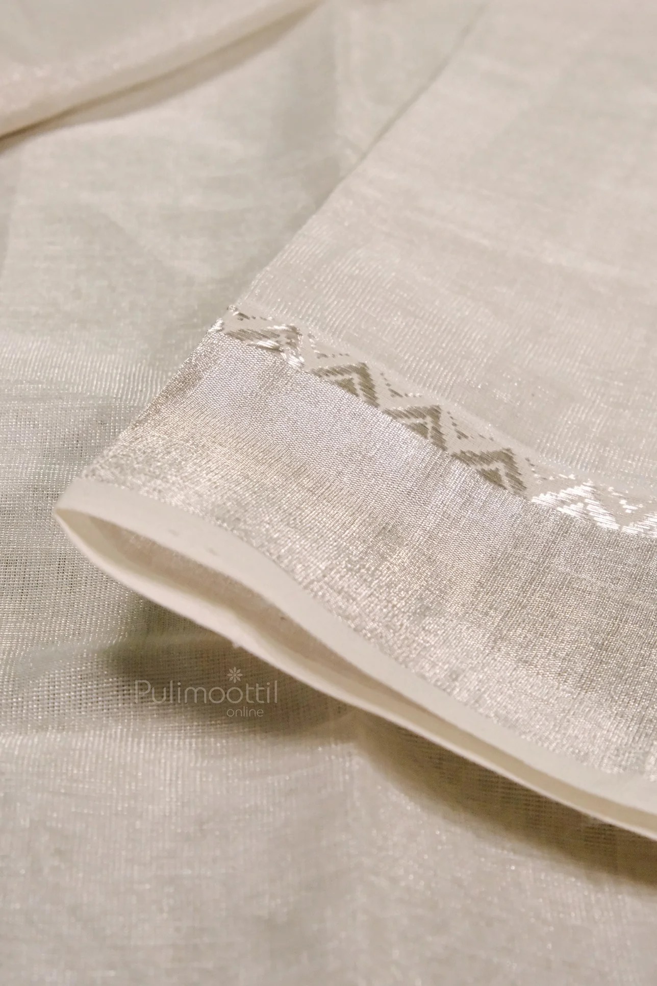 Pallu : Silver Kasavu Temple Design With Border