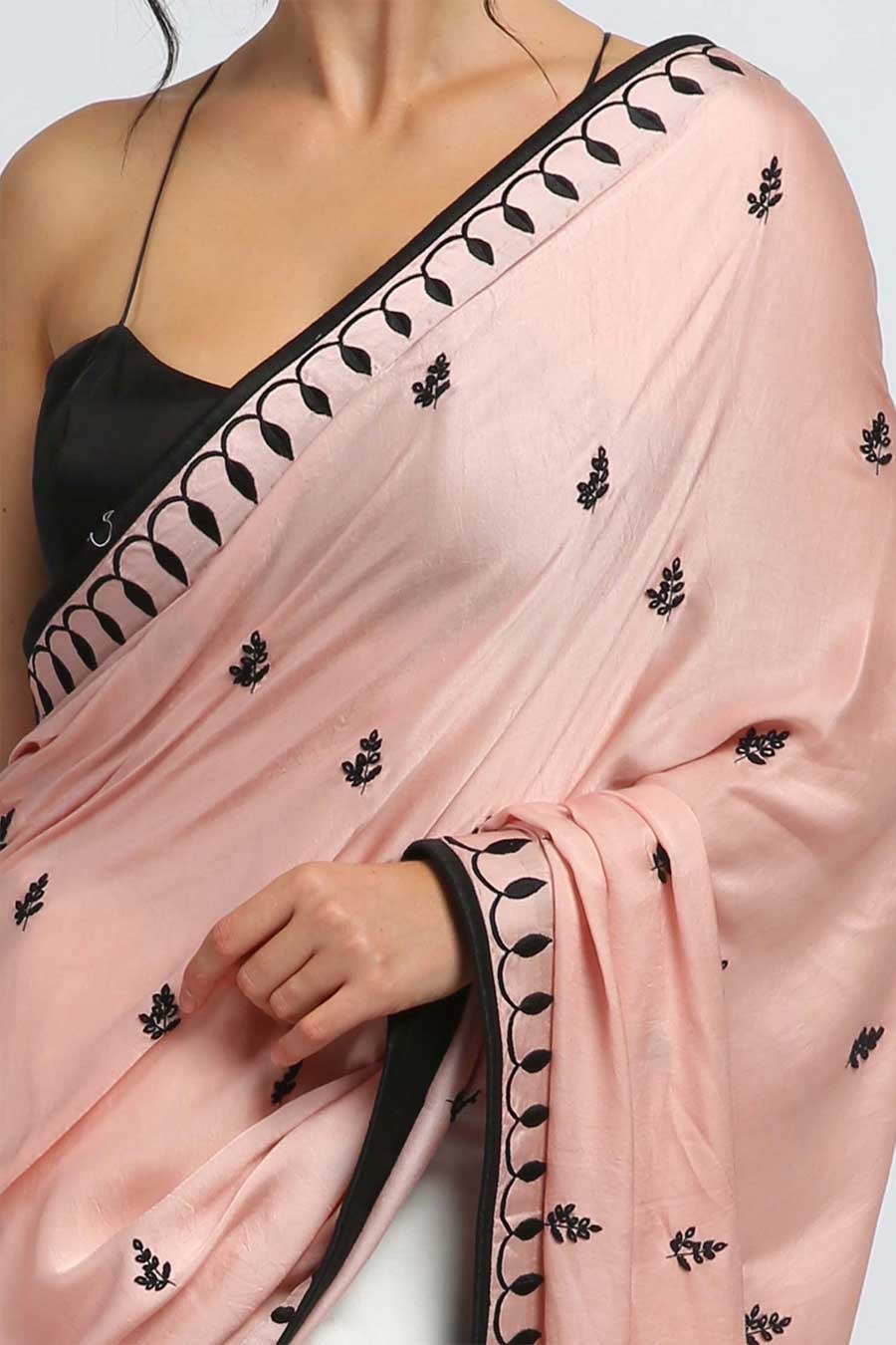 • Black hand embroidered border