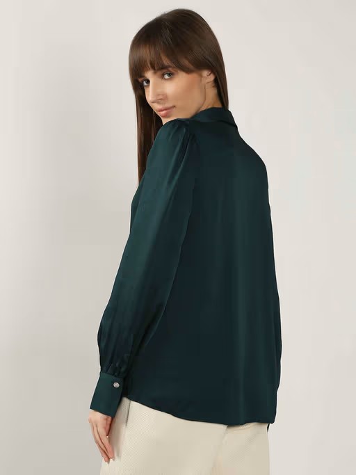 Effortlessly Chic and Easy To Style, This Green Regular-Fit Shirt From Vero Moda Features A Classic Collar, Front Button-Down Placket, and Full Sleeves with Gathered Cuffs. Designed To Fall Over The Hip, It's A Versatile Wardrobe Staple for Any Occasion.