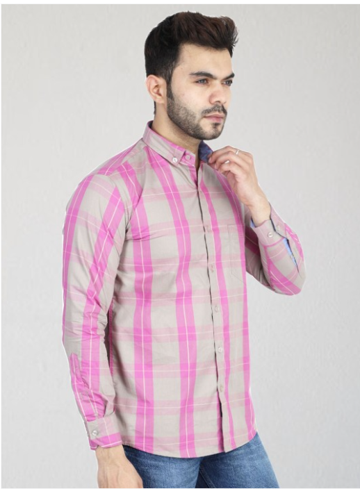 Pink tartan checks checked opaque Casual shirt ,has a button-down collar, button placket, 1 patch pocket, long regular sleeves, curved hem