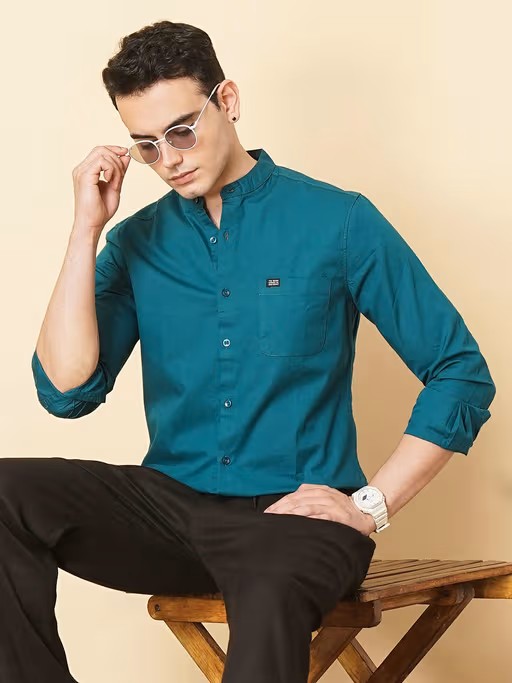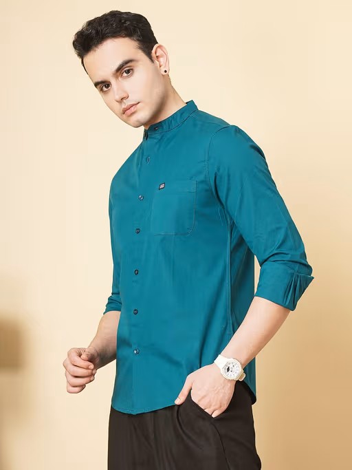 Look your stylish best in this trendy regular fit solid shirt from The Indian Garage Co. It features full sleeves and mandarin neck style. It is made from high-quality and soft fabric. Pair this with jeans or shorts for a fabulous casual look.