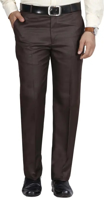 Men Regular Fit Brown Viscose Rayon Trousers