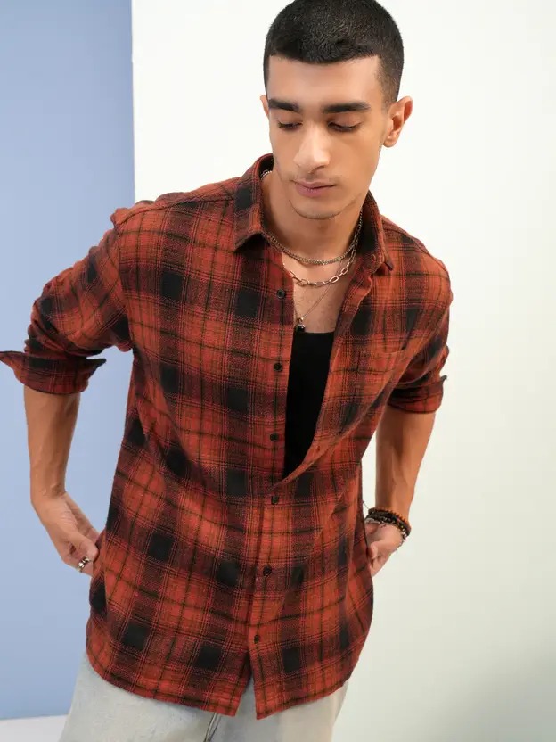 Men Relaxed Fit Fit Checkered Cut Away Collar Casual Shirt