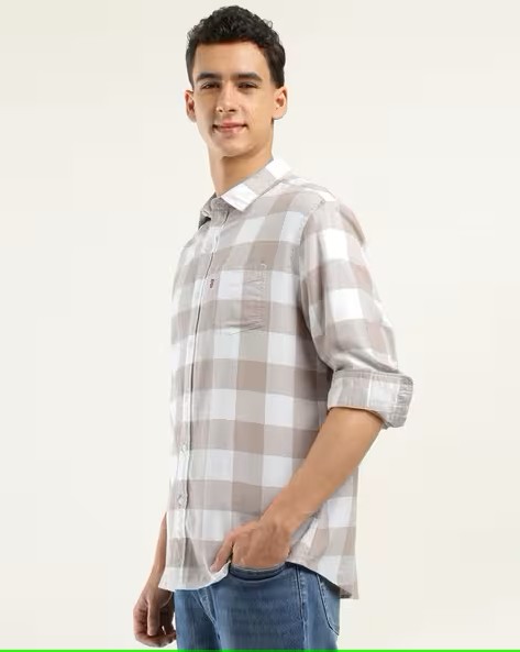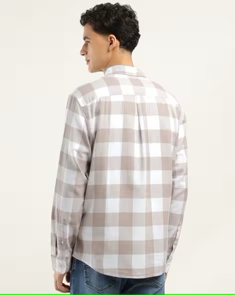 Men Checked Slim Fit Shirt with Patch Pocket