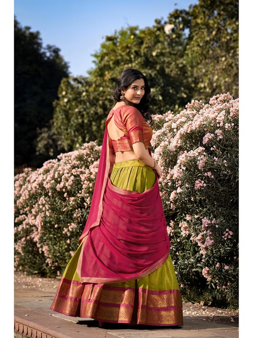 Stitch your style with this free size lehenga set from LooknBook Art. Made from high quality kanjeevaram, it features looknbook-art-green-woven-stitched-lehenga-with-unstitched-blouse-and-dupatta-set-of-3 closure and 1 pattern along with block after info column & use config design. Pair it with minimal jewellery to complete your ensemble.