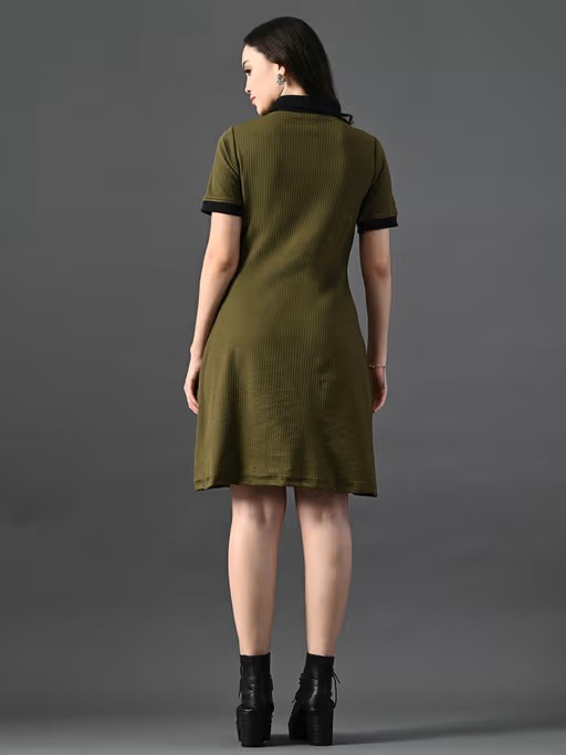 Give your everyday look an upgrade with this olive dress from MYSHKA. Crafted from polyester, this stylish dress features half sleeves and a collar neck. Team this dress with a pair of heels and dainty earrings.