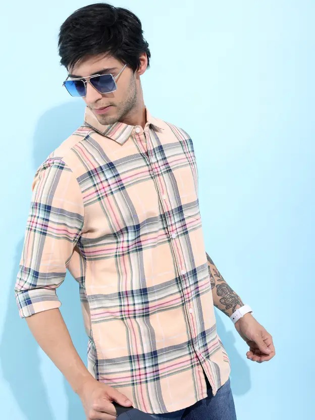 Men Slim Fit Checkered Spread Collar Casual Shirt