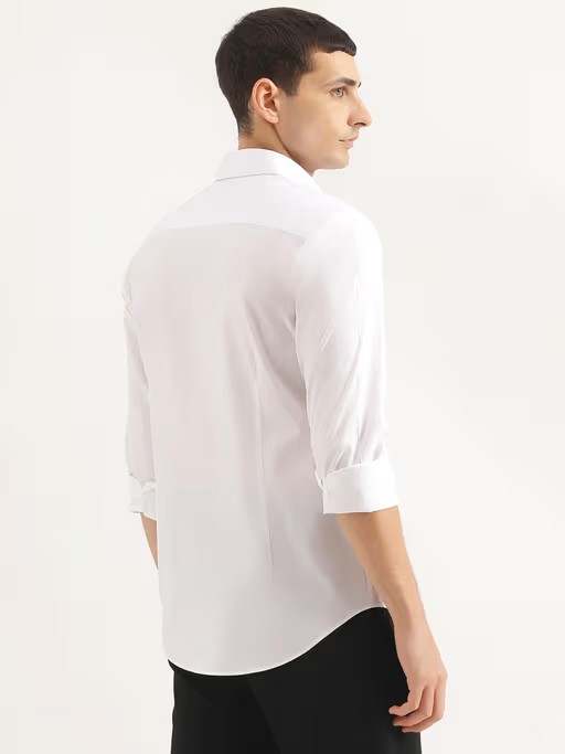 Sleek and Modern, This White Cotton Blend Shirt Features A Bold Colorblock Pattern, Slim Fit, and Full Sleeves. The Spread Collar and Button Closure Add A Touch Of Sophistication, Making It Perfect for Both Casual and Smart Casual Occasions