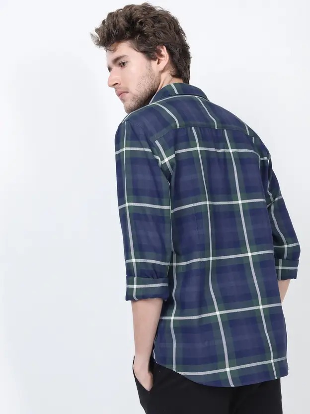 Men Slim Fit Checkered Cut Away Collar Casual Shirt