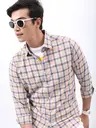 Men Slim Fit Checkered Cut Away Collar Casual Shirt