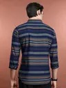 Men Slim Fit Striped Cut Away Collar Casual Shirt