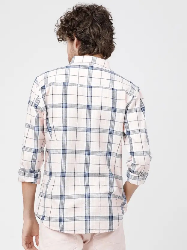 Men Slim Fit Checkered Spread Collar Casual Shirt