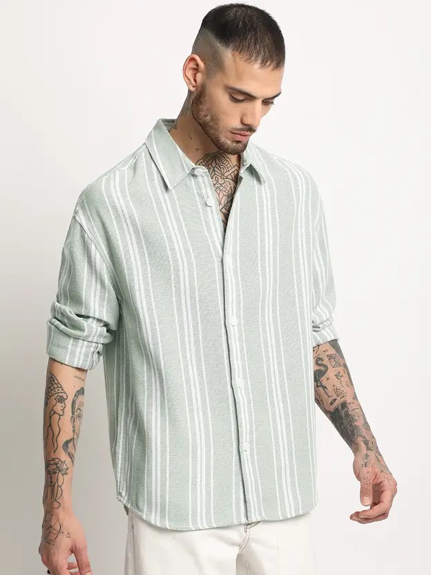 Men Relaxed Fit Fit Striped Spread Collar Formal Shirt