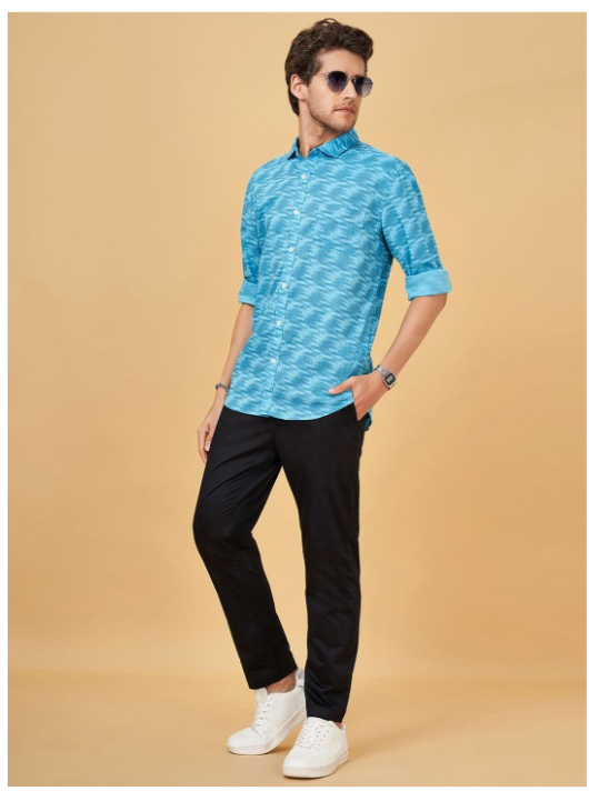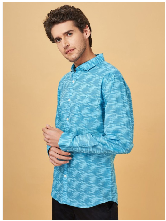 Blue horizontal stripes striped opaque Casual shirt ,has a spread collar, button placket, na pocket, long regular sleeves, curved hem