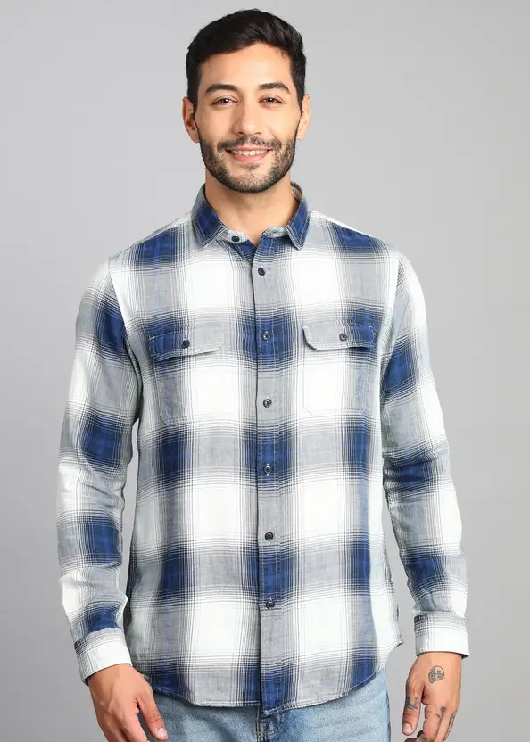Killer Mens Dark Blue Checks Full Sleeve Casual Shirt