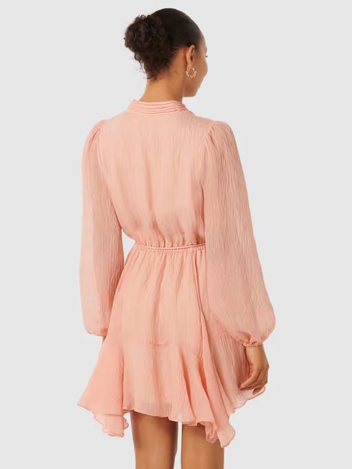 With A Delicately Ruffled Hem and Elegant Blouson Sleeves, This Mini Dress Embraces Feminine Charm Length: 86Cm (Size 8) Regular Fit Lightweight Woven Fabrication Placket Neckline with Button-Up Stand Collar Long Blouson Sleeves Removable Waist Tie with Bead Detail Elasticated Waist Button-Through Bodice Asymmetrical, Ruffled Mini Skirt Textured Finish Lined Main: 65% Viscose, 28% Polyamide, 7% Polyester. Lining: 100% Polyester
