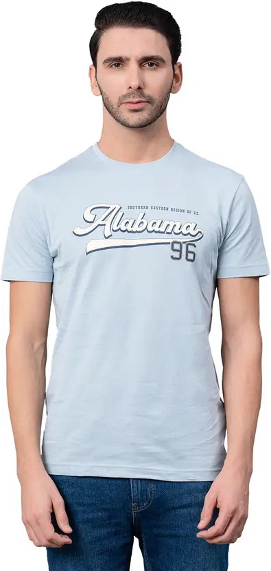 Men Graphic Print Round Neck Pure Cotton Blue T-Shirt