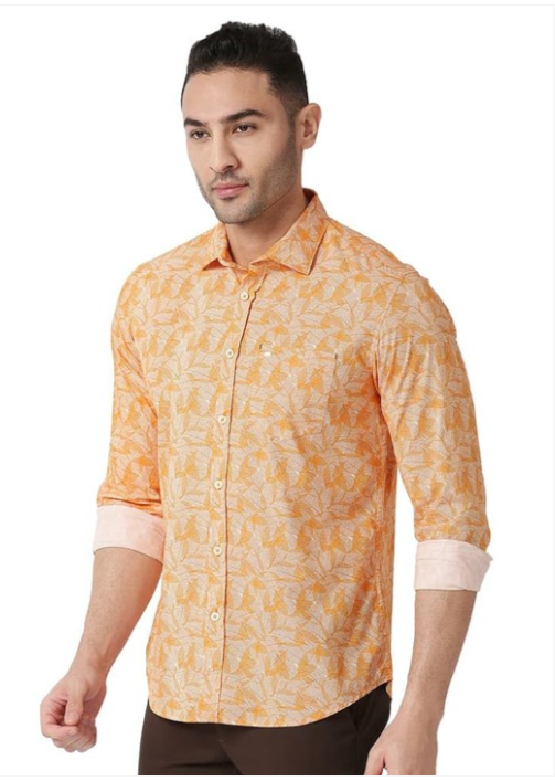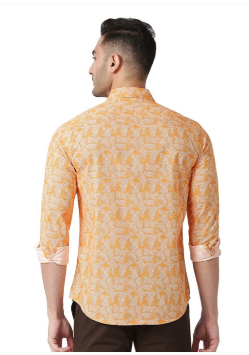 Orange floral printed opaque Casual shirt ,has a spread collar, button placket, 1 pocket, long regular sleeves, curved hem