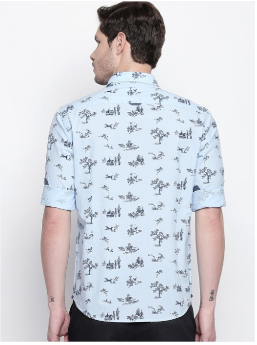 Blue conversational printed opaque Casual shirt ,has a spread collar, button placket, 1 patch pocket, long regular sleeves, curved hem