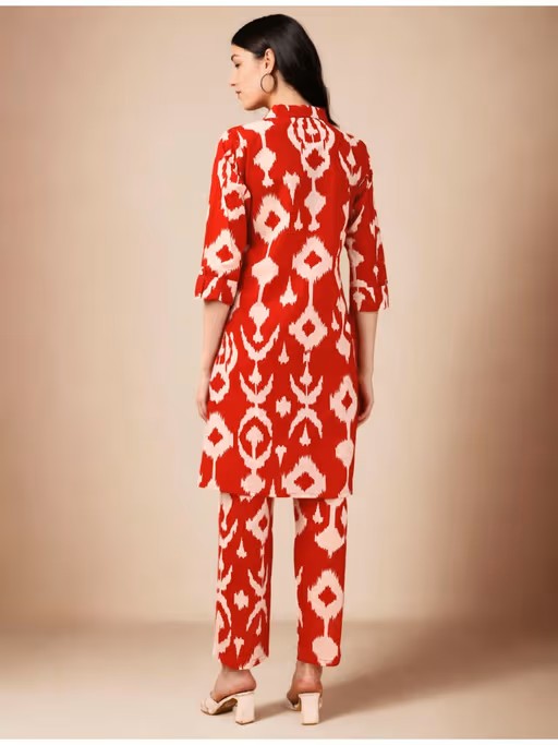 Cotton Ikat Printed Red Kurta & Pant Co-Ord (Set of 2)