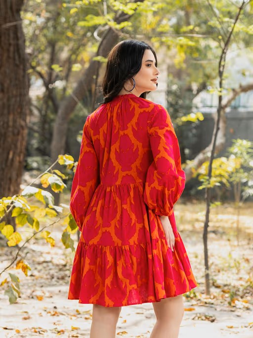 Enhance your style this season with this balloon sleeve layered mini dress from Mabish By Sonal Jain . Crafted from breathable fabric, it features an elegant printed offer and offers exceptional comfort. Pair it with heels and minimal jewellery for a chic appearance.