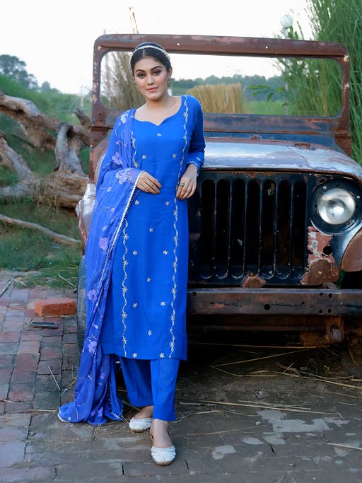 Heer Royal Blue Hand Embroidered Silk Kurta Pant with Hand Painted Dupatta have -Top Hand embroidered silk straight kurta with lining.Bottom Fully elasticated silk pant with mulmul lining.Dupatta Hand painted chiffon dupatta with gota on all edges