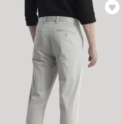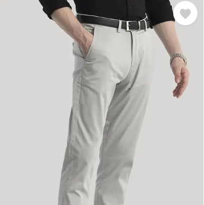 Men Slim Fit Grey Cotton Blend Trousers