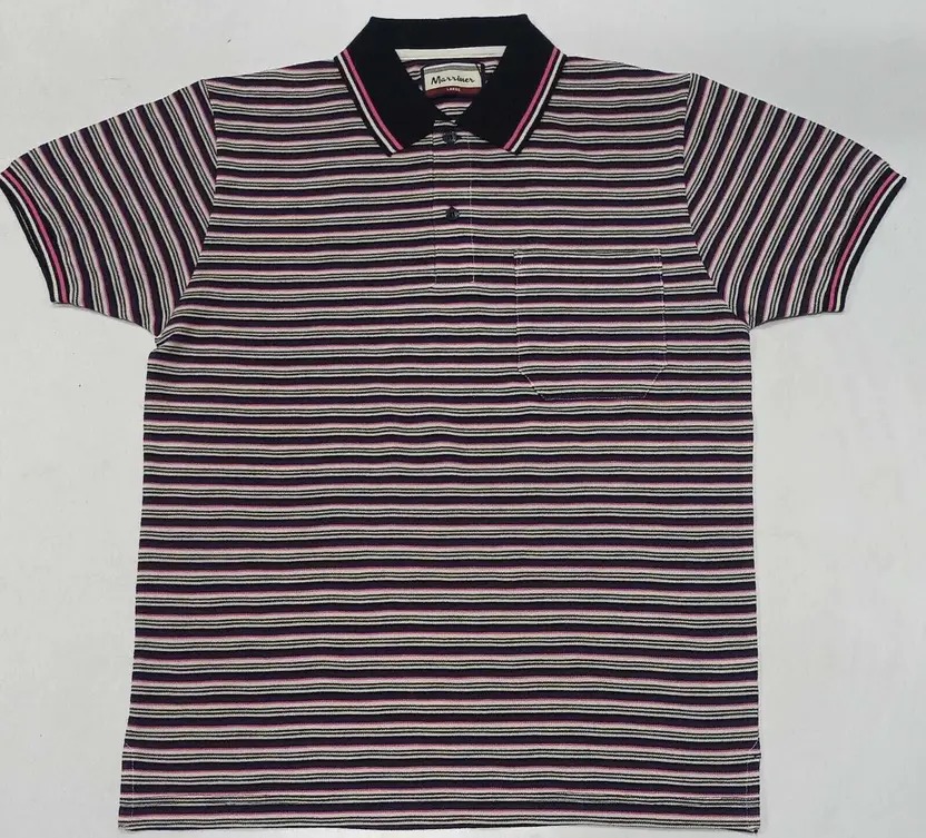 Men Striped Polo Neck Cotton Blend Brown T-Shirt