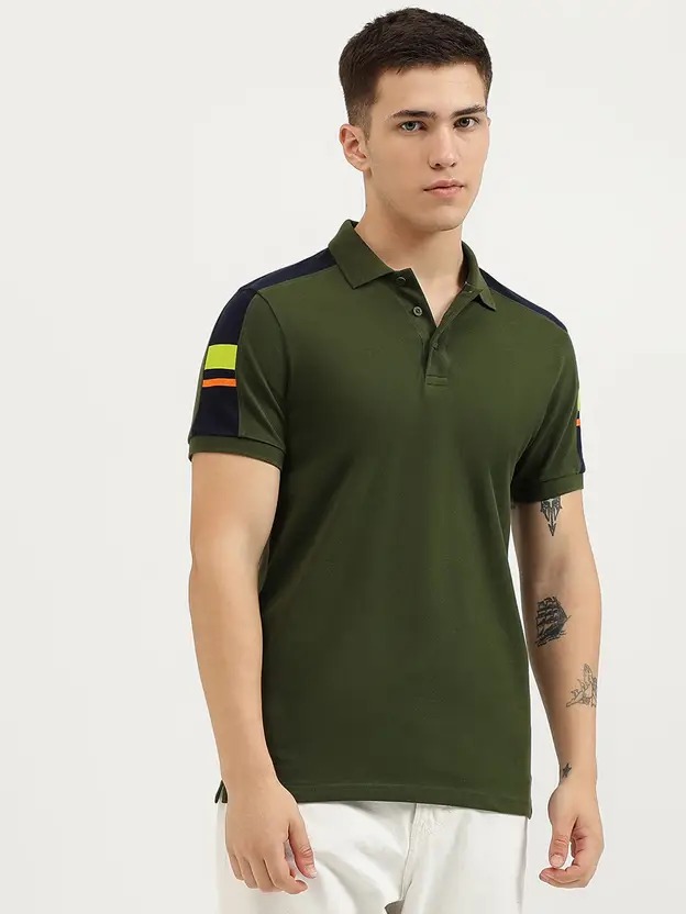 Men Self Design Polo Neck Pure Cotton Green T-Shirt