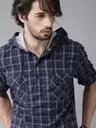 Men Regular Fit Checkered Hood Collar Casual Shirt