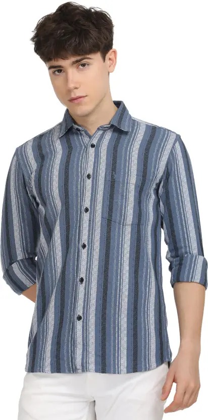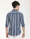 Men Slim Fit Striped Spread Collar Casual Shirt